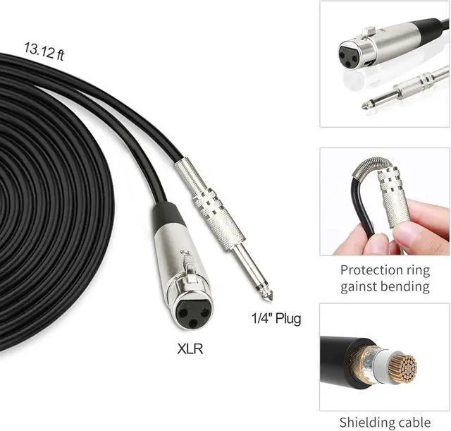 XLR TO 1/4 Cable Included - Allowing the wired xlr microphone for karaoke to be directly plug in amplifier speaker or karaoke machine that has 1/4inch ( 6.35 mm) mic in jack. The dynamic vocal microphone protected by two-tire PVC, and its thick enough for brilliant, transparent sound transmission with no loss. The corded microphone with around 13ft-long enough cable can be moved unimpeded so you can concentrate on nothing but the performance.