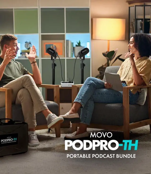PODCAST EQUIPMENT BUNDLE FOR 2 - The Movo PodPro-TH includes the dual channel MDX-2 usb audio interface, 2 CastMic XLR Dynamic Microphones, and 2 pairs of studio headphones. The perfect complete podcast kit for content creators on the go.
