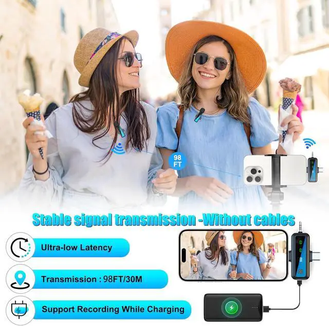 Ultra-Compact Plug-and-Play Design: Weighing only 5g, this lightweight lavalier microphone is incredibly portable, can be easily clipped on clothes, bags or hats. No need for Bluetooth pairing or appsjust plug it in, and you' re ready to go! Enjoy a stable transmission range of up to 100FT with built-in headphone monitoring for instant feedback on your audio quality.