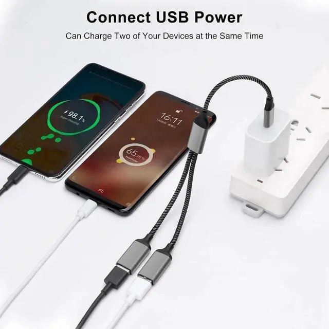 USB C Splitter 1 Input 2 Output - Supports connecting 2 USB-A port devices (receivers for wireless keyboards and mice, etc. ) to your desktop/laptop at the same time for charging and data transfer.