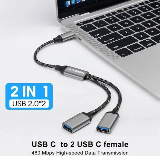 USB C Splitter for Charging - Use this USB hub to convert one USB port into two, supporting data transfer speeds up to 480 Mbps and power output up to 5V/2A.