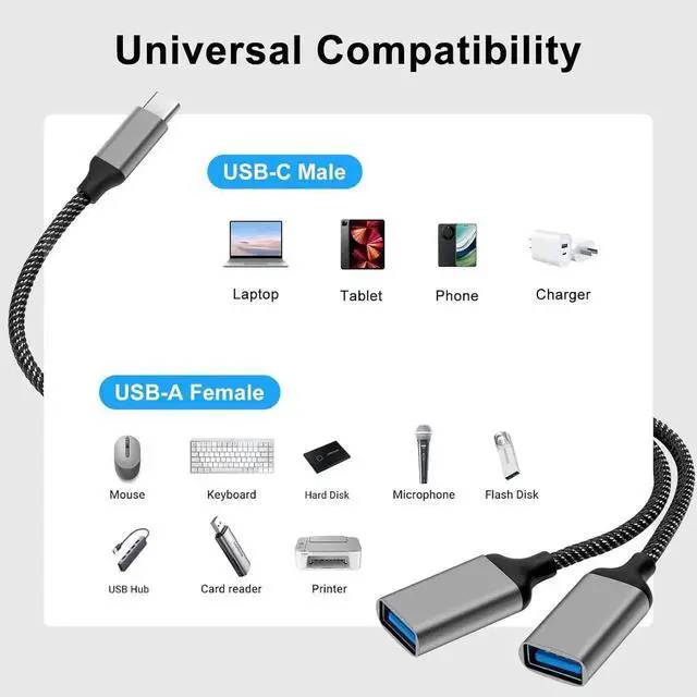 Ultra-durable - Aluminum shell and nylon braided jacket ensure the durability of the USB splitter cable. Also supports USB C splitter 1 input 2 output. This USB splitter can also be used as a USB extension cable and expands your USB ports.