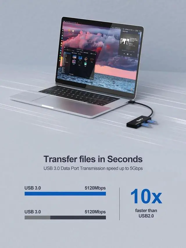 High-Speed Data Hub: The 4-port USB distributor utilizes high-efficiency USB 3.0 to provide stable data transfers of up to 5Gbps (USB 3.0 ) and supports transfer speeds of 480Mbps (USB 2.0 ) and 12Mbps (USB 1.1 ).