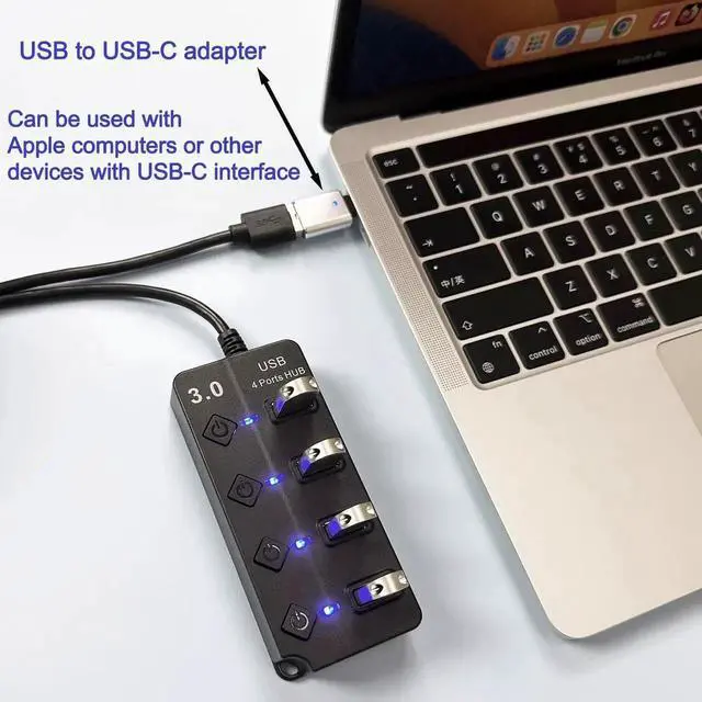 USB Hub Great Compatibility: Our 4-port USB hub is compatible with various devices such as laptops, Apple computers, Macbooks, flash drives, keyboards and mice, mobile hard drives, printers and many other USB port devices. It also supports USB fans and USB lights. use!