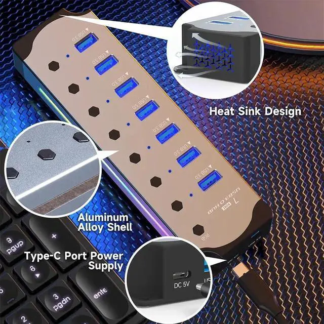 The 7-port RGB USB 3.0 hub is your ultimate solution!