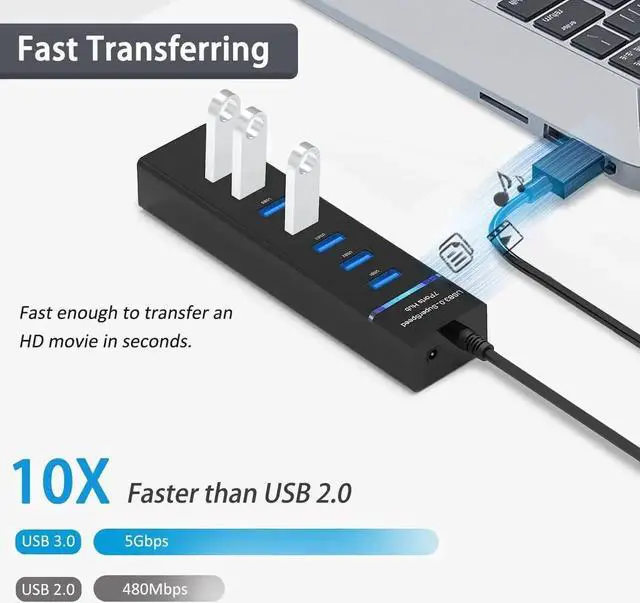 High-speed & Stable Transmission: USB 3.0 ports support super-fast data transfer up to 5Gbps, and files can be moved in seconds, with the power adapter to ensure stable connections with high-consumption devices