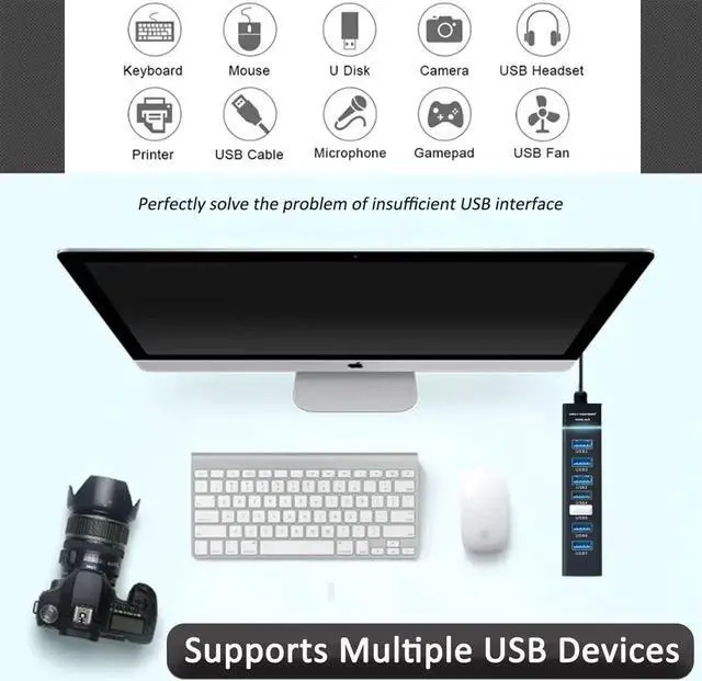 Hub: Instantly expand a single USB port into 7 USB 3.0 ports, you can connect a computer with more USB peripherals such as keyboard and mouse, flash drive, printer and more