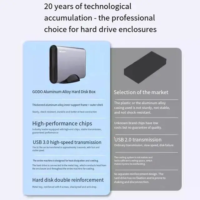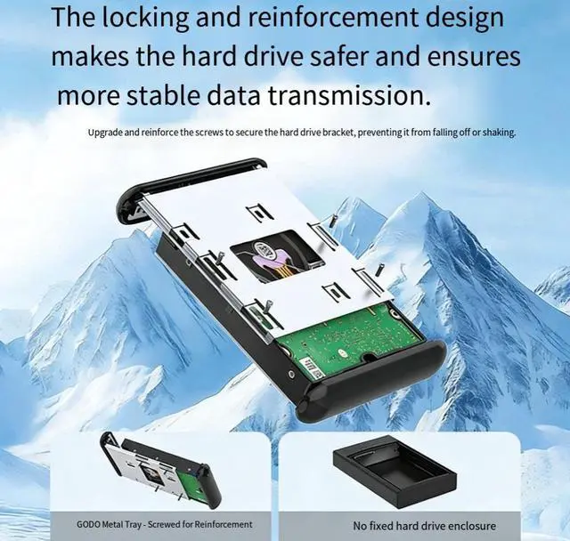Dual reinforcement metal tray + 4 screws to secure drive, anti-shake and anti-drop