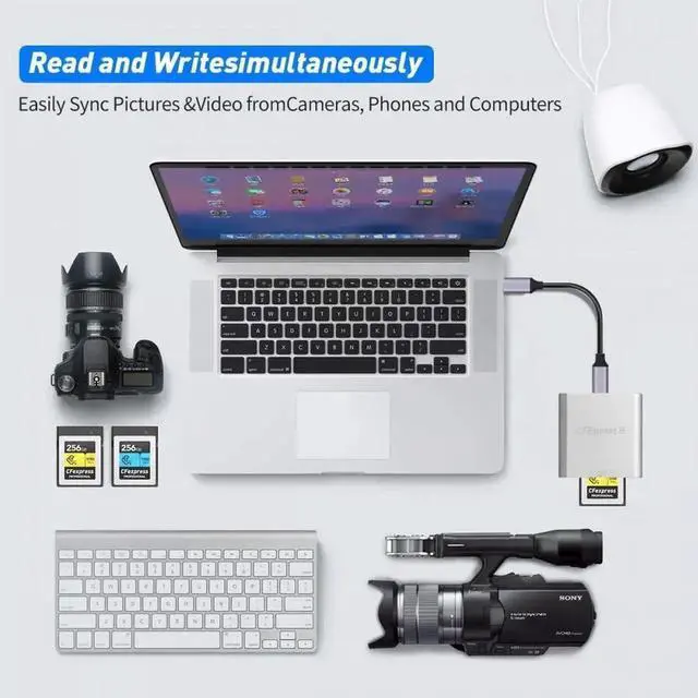 CFexpress card reader USB 3.1 Gen 2 is a high-speed card reader that utilizes USB 3.1 Gen 2 technology to provide ultra-fast data transfer speeds of up to 10Gbps and can transfer tens of gigabytes of data in seconds, Ideal for handling large amounts of HD video and photos.