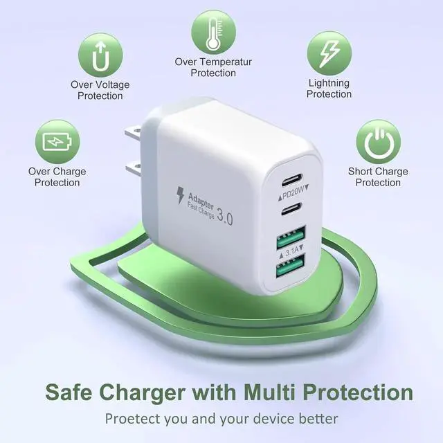 - Smart Design: Dual USB-C Ports and Dual USB-A Ports in One Charger.