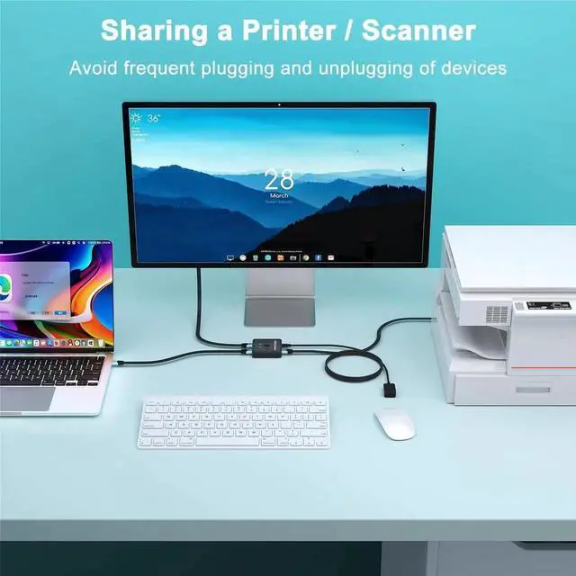 Share a printer: Two computers are connected to the printer at the same time, you can switch at any time to avoid frequent plugging and unplugging devices.