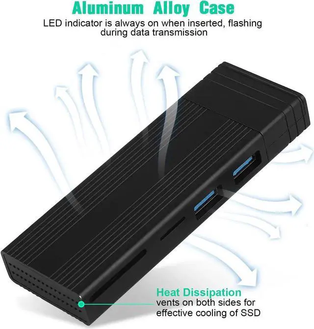 M. 2 NVME & SATA PCIe Enclosure No drivers needed Aluminum shell Tool-Free Max speed up to 10Gbps/6Gbps Support UASP / Trim Plug&Play Fits storage up to 2TB (not included) Includes both USB Type-C and USB 3.1 (Type-A) cables Overheating Protection If your ssd overheating when transfer large of data, enclosure will run the overheating protection auto and goes into read-only mode or stop the transfer or down the speed of transfer data. Avoiding your ssd damage due to overheating and improving the life of your SSD.