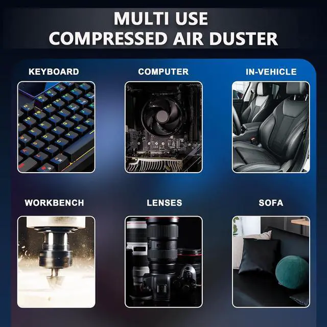 Compressed Air Duste : High speed air dust collector, strong performance, the maximum blowing force is 200g, and the peak wind speed is more than 52 m/s. It can easily remove dirt hidden in various crevices of the keyboard or any electronic device, making it extremely convenient to use in a home, office, or car dust collector.