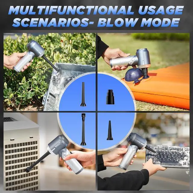 3-in-1 Multifunctional Mini Car Vacuum CleanerSaker portable car vacuum is equipped with a variety of accessories to meet various usage scenarios such as blowing, sucking and pumping. It can not only clean computer keyboards, host computers, windows and other difficult-to-clean gaps, but also sofas, seats, cars, woodworking workshops, offices, etc, to meet your various cleaning needs.