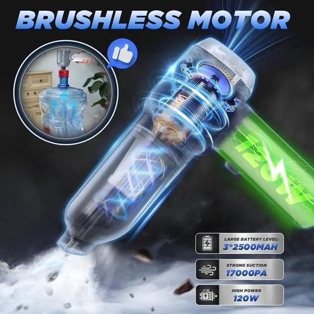 17000PA Super SuctionSaker handheld car vacuum cleaner uses an upgraded high-speed brushless motor with 17000PA super suction. The three-speed suction adjustment achieves different suction powers of 7KPA-17kPA, and sand, dust and debris, pet hair, etc. can be easily cleaned.