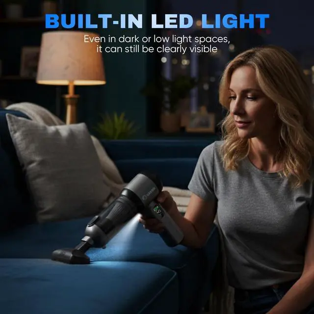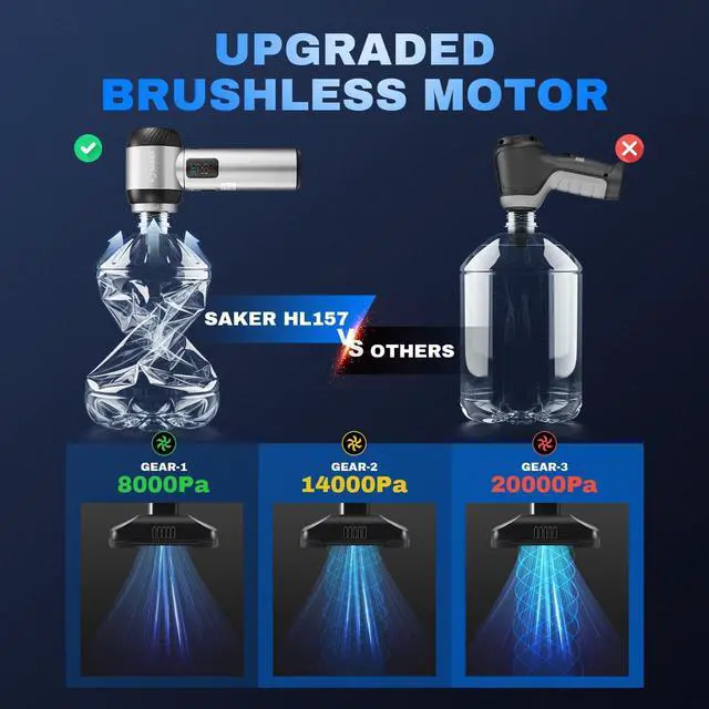 Strong 20000PA Suction with Upgraded MotorEquipped with a high-performance brushless motor, this Saker Handheld Vacuum delivers an impressive 20,000PA suction power to easily lift dirt, pet hair, and debris from tight spaces and tough surfaces.