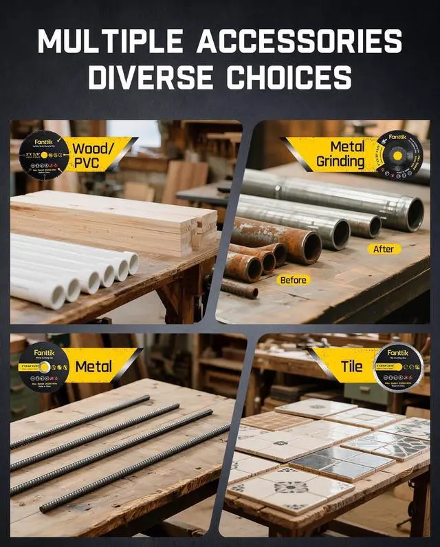 Four Blade & All-in-One Versatility: Comes with four 3-inch cutting blades: Aluminum oxide, resin, alloy and diamond, with EZshift modes switch , ready to use, professional for cutting metal, wood, tile & more. Tackle home projects without extra discs