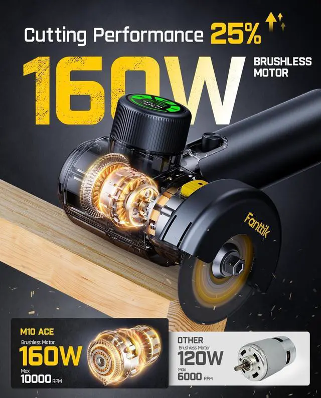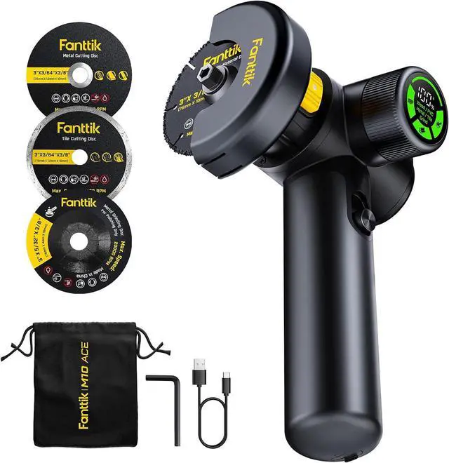 Fanttik M10 ACE Cordless Angle Grinder Brushless, Compact Cut Off Tool with LED Display, 3 Variable Modes, Double Security, Type-C Fast Charging, 10000RPM Mini Cutter with 4 Blades