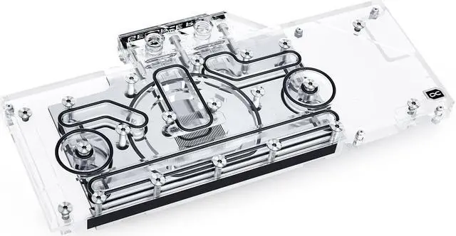 The Eisblock Aurora Acryl GPX-N RTX 3080/3090 Turbo cooler has been designed so that lighting is more important than the previous models. The addressable digital RGB LEDs are embedded directly into the cooling block and run along the entire cooling block. The effect is an illumination of the entire cooling block. No corner or edge remains unlit by the aRGB LEDs. The new design is more angular with all edges beveled. This promotes better light diffusion in the water cooler due to the reflections on these bevels. In addition, they create various contours, which give the Eisblock Aurora Acryl GPX-N RTX 3080/3090 Turbo cooler its very own unique identity.