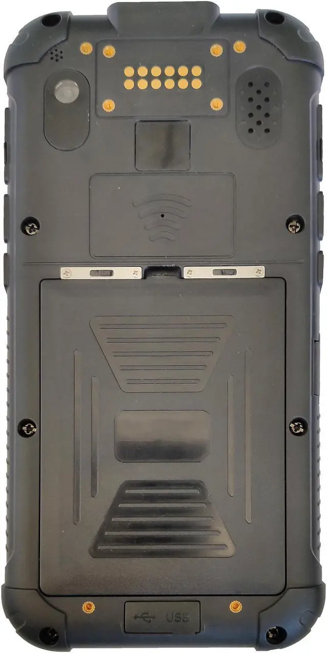 Buttons: Volume +,Volume -, Power button, barcode scanner, H