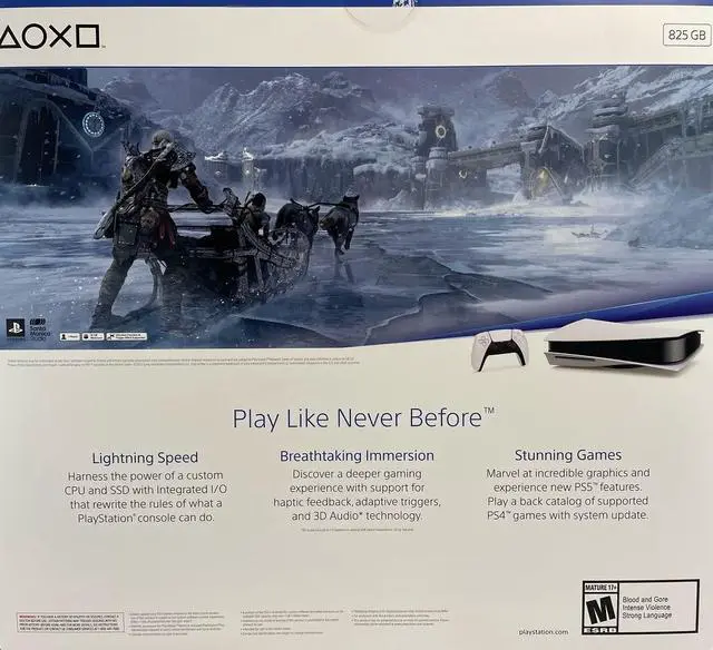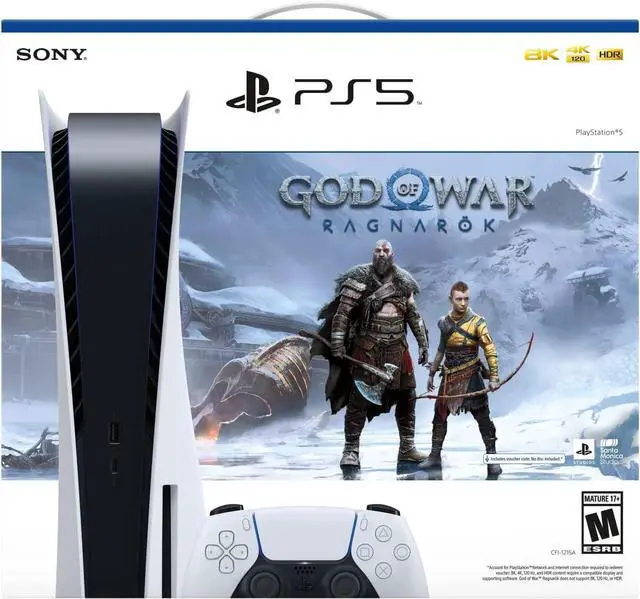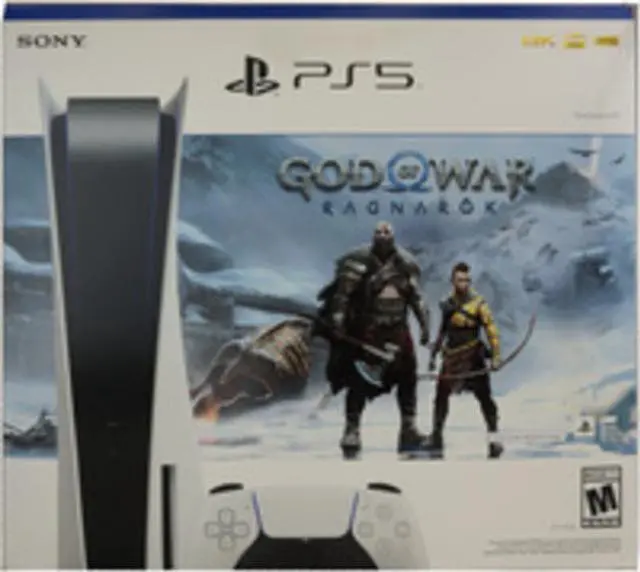 Sony 1000032624 Playstation 5 Console With God Of War Ragnarok Digital Code - Disc Edition - 825 GB Solid State Drive - HDR - USB-C - USB-A - White