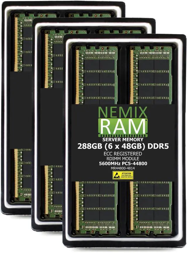 NEMIX RAM 288GB (6X48GB) DDR5 5600MHz PC5-44800 1Rx4 1.1V CL46 288-PIN ECC RDIMM Registered Server Memory Kit Compatible with Lenovo ThinkSystem SR655 V3 AI Server