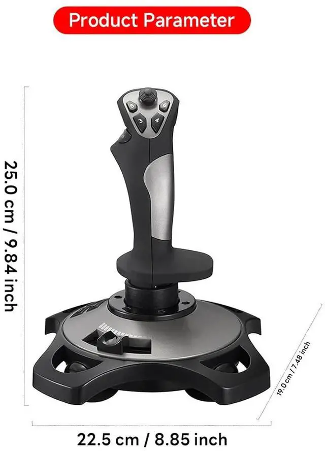 [Comfortable Grip] This USB joystick has a solid and smoothly feel, very comfortable to grip, with four strong suction cups at the bottom, can be firmly fixed on the table, precise throttle control, ergonomically designed, easy to control all functions with one hand.