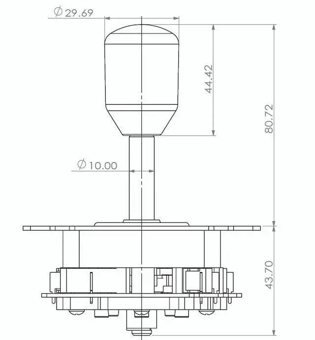 Unlike ordinary joysticks, the NOBI model has a special design in which the shaft and bullet lever do not rotate.