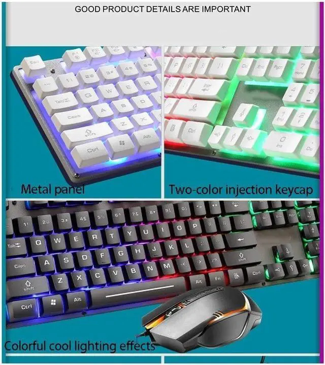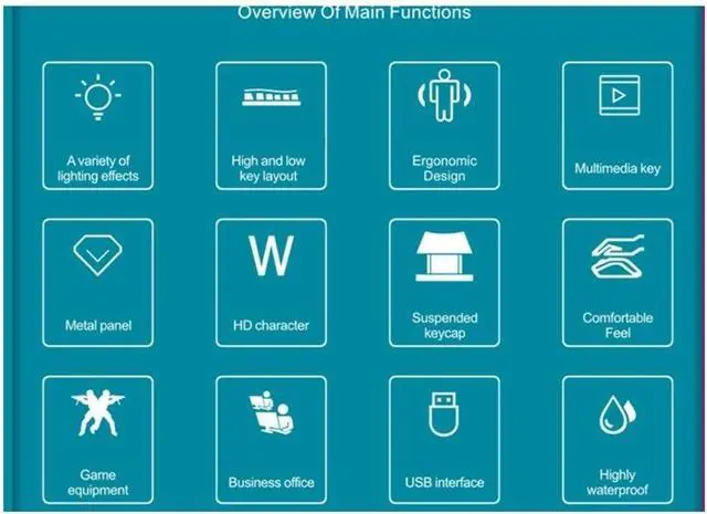 Keyboard Suspended high and low key caps, real mechanical feel, comfortable use of UV characters, long-term operation does not fade, use with confidence