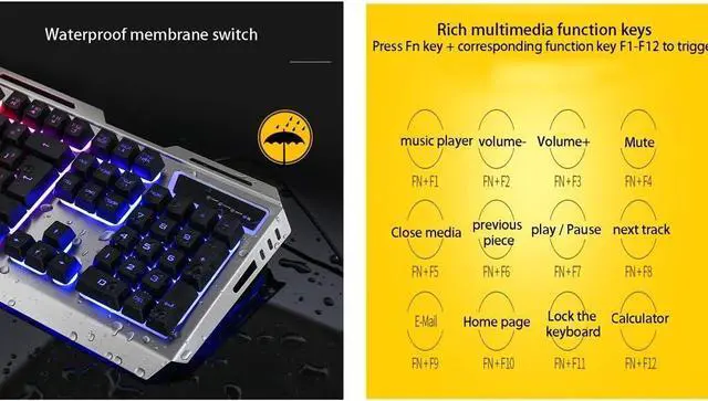 Keyboard Aluminum alloy panel With Mechanical Feeling,The whole gaming keyboard panel is made from premium quality metal material, shockproof, wear-resistant and keep stable no slip.