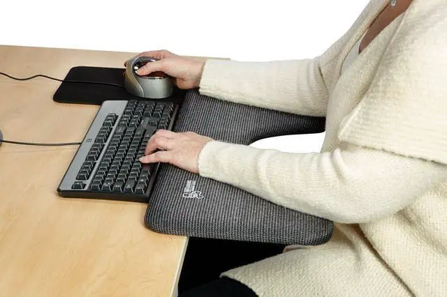 The Morency Rest provides maximum wrist and forearm support for heavy computer users. Arm support lessens muscle activity, reducing worker fatigue. Wrists are kept in a natural position, reducing risk of CTS. Soft and comfortably padded nylon material is also easy to clean. Easily clamps to the front edge of desks 5/8" to 1-3/4" thick. Morency with Mouse Rest has a wider side to support the wrist while performing mouse operations.