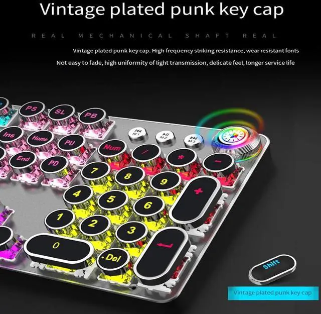 The keyboard panel is made of aluminum alloy metal, matte texture, durable, stylish, highlighting quality and taste. Fashionable retro steampunk keycaps use double injection molding technology to prevent the letters from wearing out and maintain good light transmission. The keyboard is also equipped with a detachable magnetic wrist rest, which is convenient and quick to install and remove.