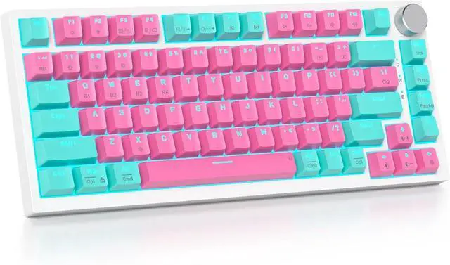 Professional Gaming FeaturesDesigned for gamers, this 81-key 75% layout bluetooth mechanical keyboard wireless saves space while retaining essential keys. The multifunction knob controls media, and you can program keys for macros to enhance gaming and productivity. N-key rollover and WIN key lock prevent accidental presses during intense gaming.Additionally, this rechargeable keyboard features a high-capacity 4000mAh battery, providing extended battery life to keep you powered throughout your day.