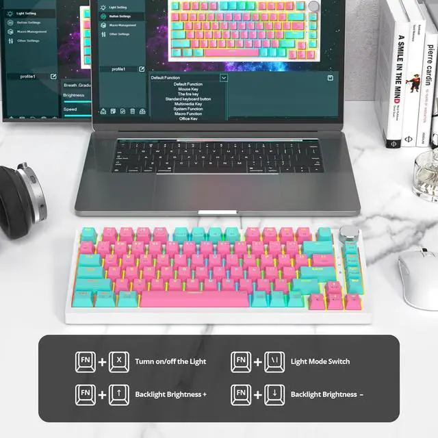 Universal CompatibilityThis pink gaming keyboard wireless model is compatible with both Win and Mac operating systems. Effortlessly switch between platforms, whether you're on a PC, Laptop, Xbox, or PS4, using the USB wireless dongle or Bluetooth connectivity.