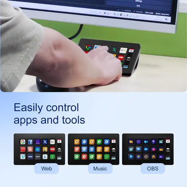 One-Touch Operation The customizable USB macro keypad/Stream Controller delivers instant efficiency with its one-touch functionality. A single click triggers unlimited actionsfrom launching macros, text input, file/website access, media control, and OBS scene switching to social post launches, audio adjustments, mic muting, and light control (single or multiple actions). Designed for gamers, streamers, professionals, creatives, and anyone needing quick hotkey access, it streamlines tasks intuitively.