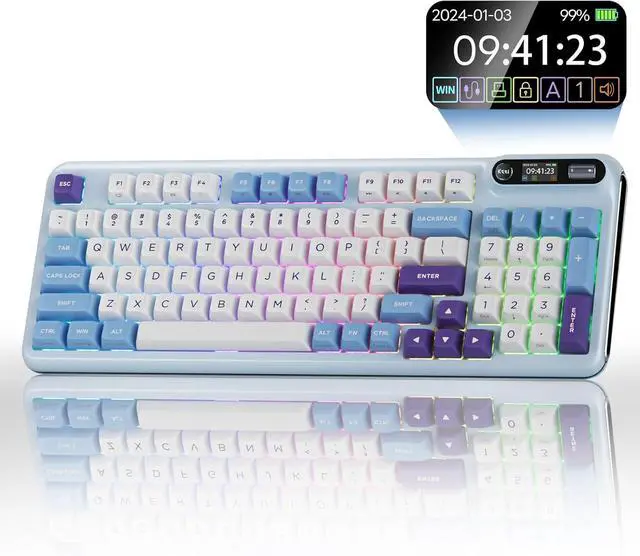 Innovative Smart Display & Knob: Elevate your typing and gaming experience with the KZZI wireless mechanical keyboard. Featuring a cutting-edge display screen and a built-in three-way knob, you can easily view system info and adjust keyboard settings at a glance. Plus, express your style by displaying custom GIFs, like your favorite pet, directly on your keyboard.