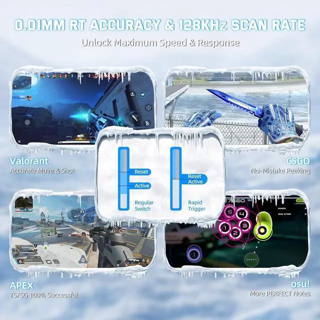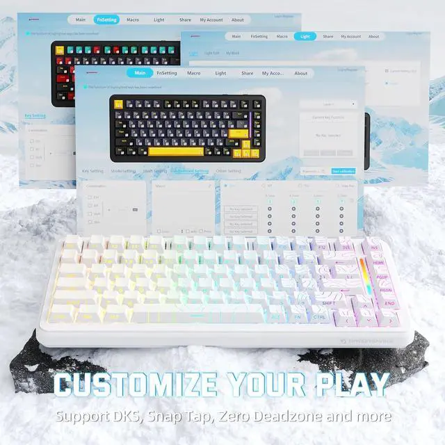 Snap Tap & Dynamic KeystrokeSnap Tap always prioritises your latest simultaneous key inputs for lightning-fast directional shifts, while Dynamic Keystroke enables true multi-stage actuationup to four discrete actions per pressperfect for seamless combo execution and complex macros.