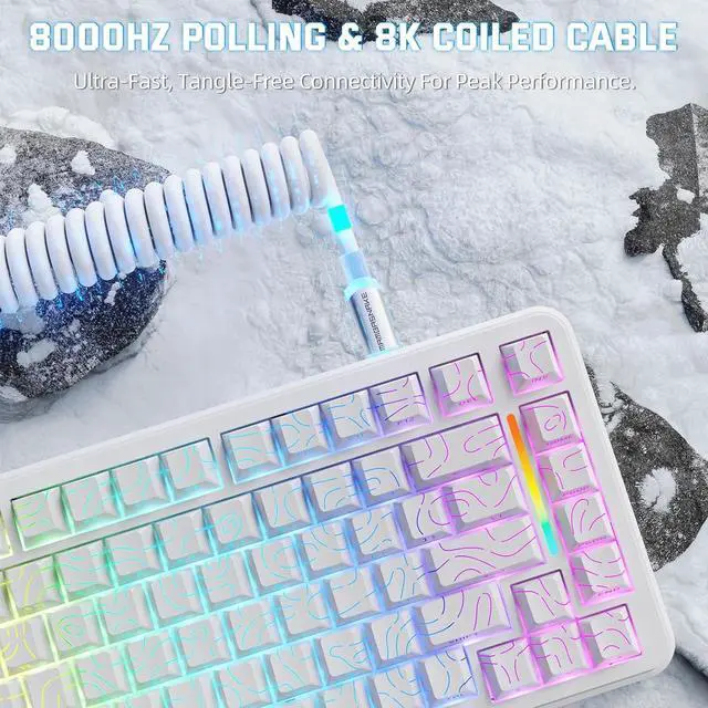 Premium 8KHz RGB Coiled Cable IncludedComes with a durable coiled cable supporting 8000Hz polling rate. Translucent housings with built-in RGB LEDs deliver vivid ambient glow at both ends. Metal connectors and flexible TPU jacket complete a pro-grade setup for rapid trigger keyboards.