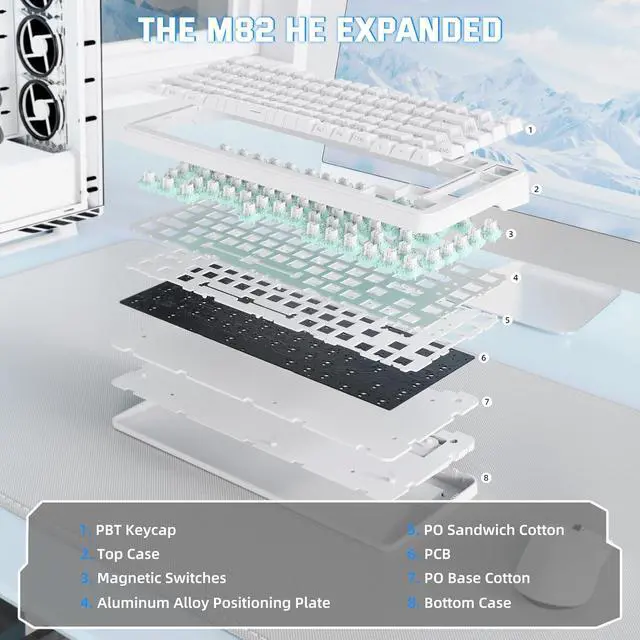 0.125 ms Latency & 8000 Hz Polling RateBoasting an 8000 Hz USB polling rate and 128 kHz scan frequency, the M82 HE achieves just 0.125 ms signal latencyeight times faster than standard keyboardsensuring lag-free input in even the most intense gaming clashes.