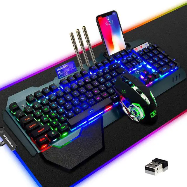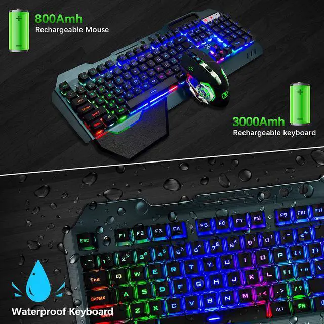3 in 1 Combo:The wireless rechargeable gaming keyboards, wireless rechargeable gaming mouse and RGB wired gaming Mouse Pad are all in the box.You will be shocked by them.(New Improved Version)
