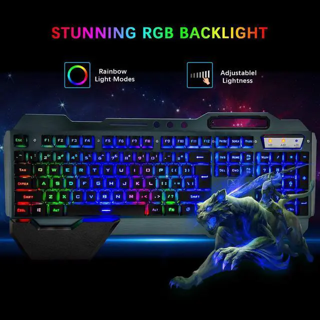 Rainbow Backlit Keyboard:The led keyboard with colorful backlight effect is an excellent visual experience in night operation, pressing FN+DEL to switc three backlight states (normally bright-breath-off), The keyboard can adjust backlight brightness and breathing frequency,the quality of the keyboard mouse combo is A