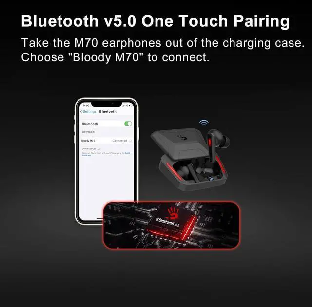 One Step Pairing, One Finger Control - Adopt Bluetooth 5.0 technology, Bloody ture wireless earbuds provide you with faster, wider range and more stable transmission, bringing you a more smooth and pleasant experience. Buttonless design allows you to control the earbuds with a touch, easy to use.