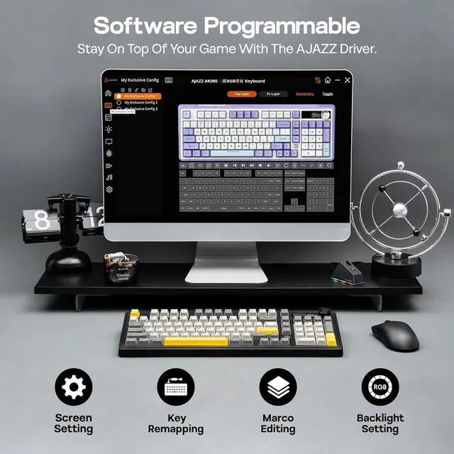 97 Keys and a Metal Knob The AJAZZ AK980 gaming keyboard comes equipped with 97 keys, including a robust metal knob for additional functionality. Adjust volume, scroll through pages, or customize it to perform other handy shortcuts. This keyboard gives you full control, making every task more convenient and accessible.