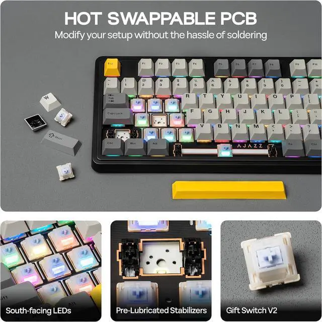Gasket Structure & Hotswappable PCB Experience typing perfection with the AJAZZ AK980's gasket structure and hot-swappable PCB. These mechanical keyboard features allow for a customizable typing feel and easy switch replacements, ensuring that each keystroke is stable, smooth, and exactly to your liking. Modify your setup without the hassle of solderingperfect for enthusiasts and newcomers alike.
