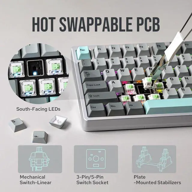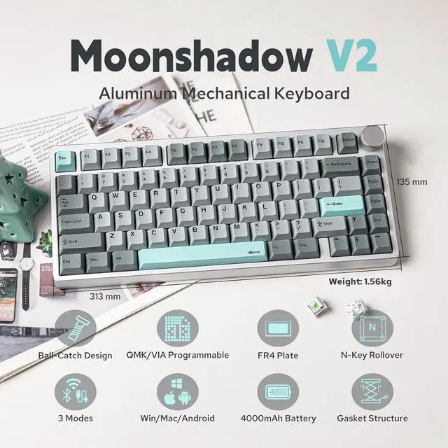 Flexible & Stable The Moonshadow V2 mechanical keyboard comes with a flex-cut FR4 plate, resulting in a softer typing experience, more precise keystrokes, and better acoustic features.