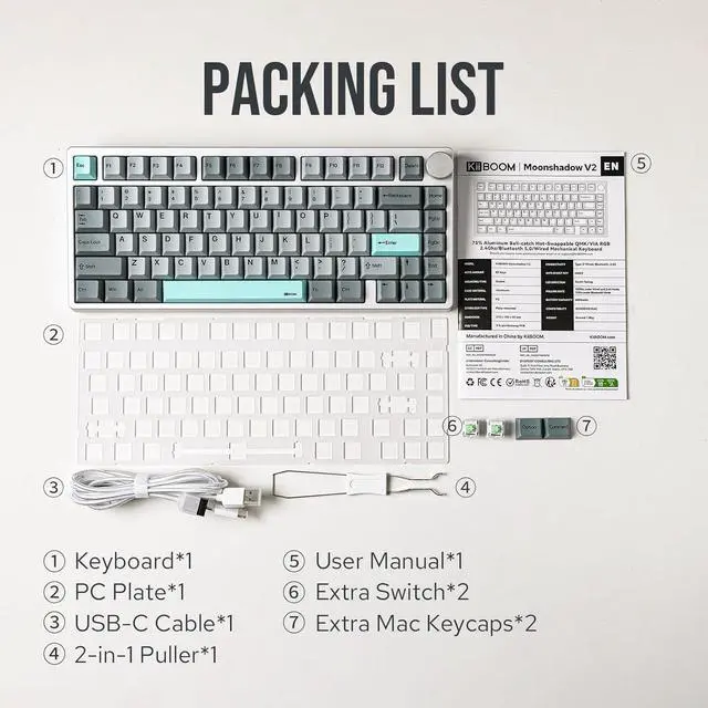 Moonshadow V2 Silver Flex-Cut FR4 Plate & PCB Moonshadow V2 Silver KiiBOOM Moonshadow V2: Full Aluminum Alloy Mechanical Keyboard with Ball-Catch Case What are the polling rate and latency of this gaming keyboard?
