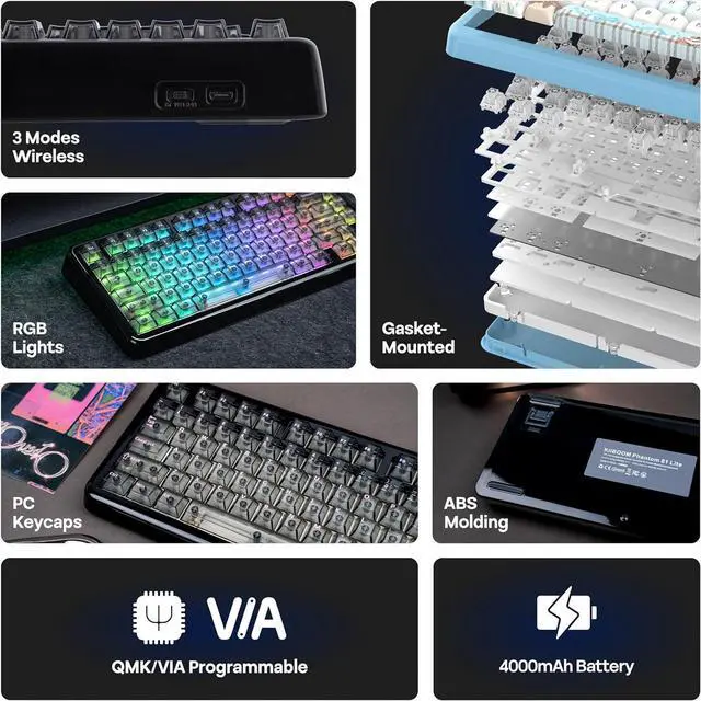 Phantom81 Lite Black KiiBOOM Phantom81 Lite: Hot-Swappable Custom Mechanical Keyboard with RGB Backlights Creamy Gasket Structure / KiiBOOM Linear Switch / Packing List Gasket-Mounted Structure Phantom81 Lite Black Where can I download the JSON file of the Phantom81 Lite keyboard to custom?Can I remap FN key?