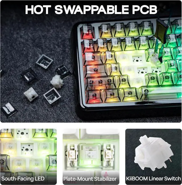 Sound-Dampened Layers: Equipped with specialized sound-dampening materials, this keyboard significantly reduces noise. Enjoy a quieter workspace without compromising on the tactile feedback that mechanical keyboards are known for.