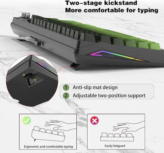 [Side-Prined PBT Keycaps]:These side-engraved PBT keycaps take double injection molding and heat sublimation process, which are more durable without fading, sweat-proof, and softer to the touch. Compared with traditional keyboard, this side-prined keyboard can bring you a very different keyboard using experience.