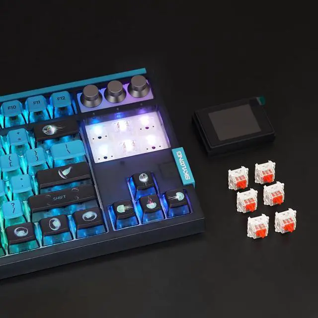 Molgria GK87 Pro Jellyfish RGB Backlit Screen Mode Gaming Keyboard Main Features Pudding Keys Screen mode knobing switch function 4 Sides Transparent light shine through pudding keys 1.7 Inch RGB Screen Mode show important informations Real View Shot-1 Real View Shot-2